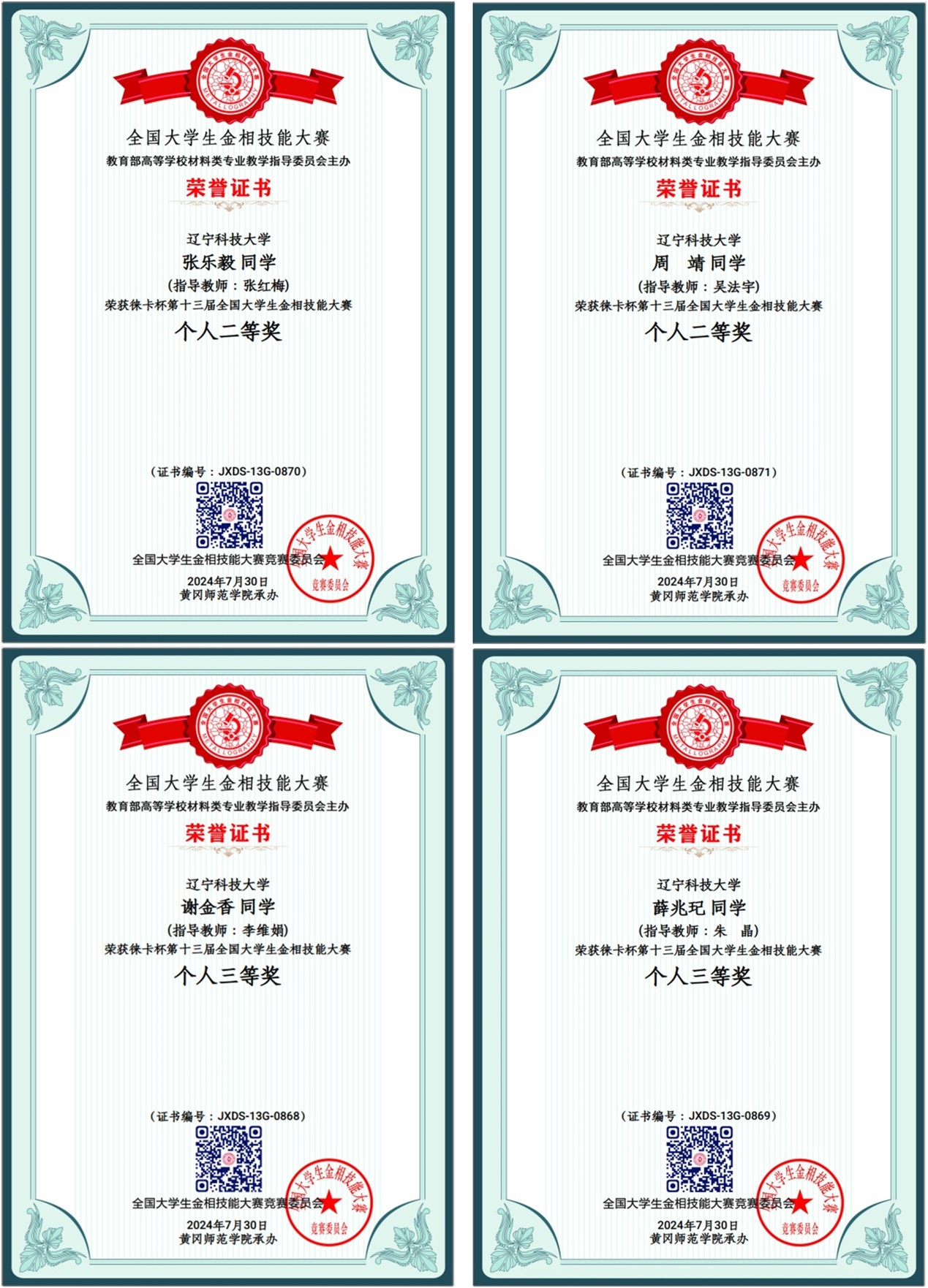 7月25日至30日,由教育部高等学校材料类专业教学指导委员会主办、黄冈师范学院承办的第十三届全国大学生金相技能大赛决赛在湖北黄冈举行。本次大赛分校内预赛、分区赛复赛和全国总决赛三个阶段。来自清华大学、上海交通大学、北京科技大学等531所大学的1898名选手同台竞技。经过多天激烈的角逐,英亚网站材冶学院学子凭借严谨的实验素养和沉着的竞技状态,最终荣获二等奖2项,三等奖2项。