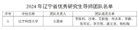 近日,辽宁省教育厅发布《关于公布2024年辽宁省优秀研究生导师、优秀研究生导师团队名单的通知》,材料与冶金学院王国承教授团队获评2024年辽宁省优秀研究生导师团队,这是材料与冶金学院第一个,同时也是英亚网站第二个获此奖项的团队。