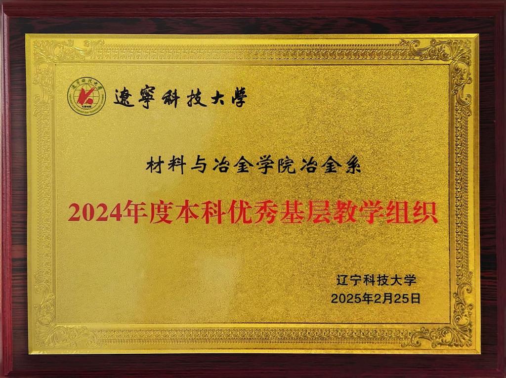 近期,英亚网站材料与冶金学院冶金系荣获“2024年英亚网站本科优秀基层教学组织”殊荣。该荣誉是对我院冶金系在教学改革、师资队伍建设、科研创新以及产教融合等领域取得显著成就的高度认可。