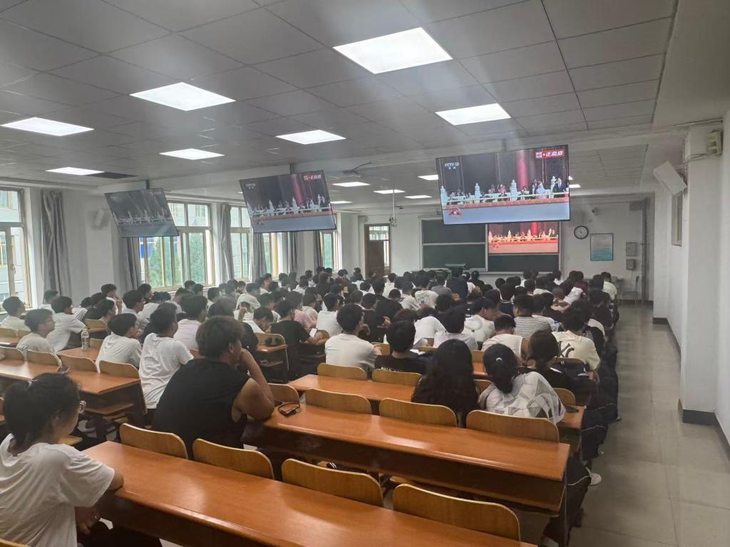 9月3日,纪念中国人民抗日战争暨世界反法西斯战争胜利80周年阅兵仪式在北京隆重举行。材冶学院积极组织全体师生于明贤楼A523会议室、博学楼教室,观看阅兵直播,共同见证了这一庄严而神圣的时刻。