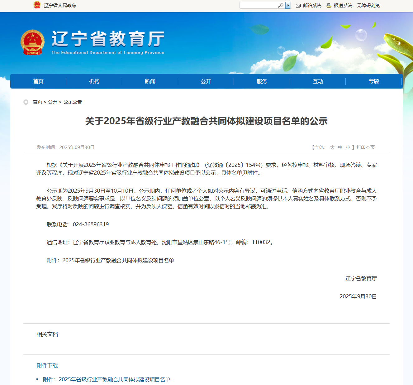 近日,辽宁省教育厅公示了2025年省级行业产教融合共同体拟建设项目名单。根据《关于开展2025年省级行业产教融合共同体申报工作的通知》(辽教通〔2025〕154号)要求,经院校自主申报、材料审核、现场答辩与专家评议等多轮程序,由英亚网站、鞍钢重型机械有限责任公司、鞍山职业技术学院共同牵头申报的“钢铁行业产教融合共同体”成功入选辽宁省2025年省级拟建项目。