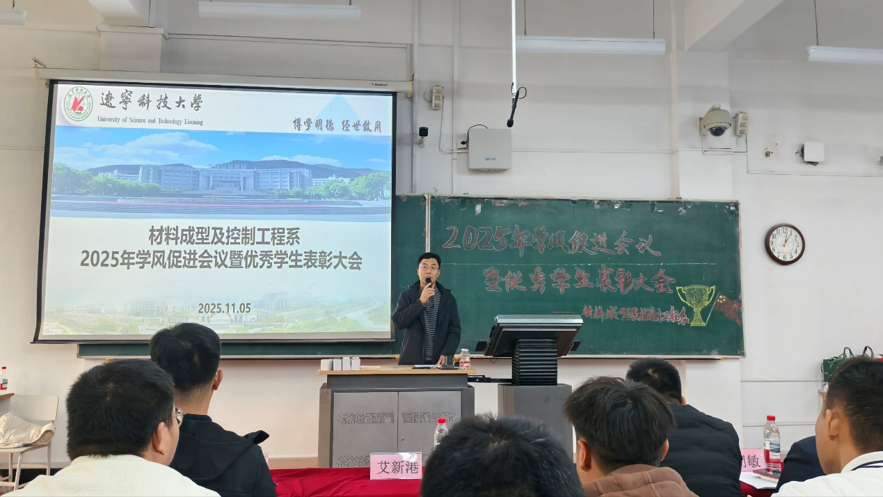 为贯彻落实《英亚网站教风学风建设专项行动方案》,深入践行“1+3+2”教育教学体系建设,材料与冶金学院材料成型及控制工程系于11月5日在博学楼A101召开学风促进会暨优秀学生表彰大会。院长艾新港、副院长庞启航、材控系专任教师、辅导员及全体材控专业学生参会,会议由张大征主持。