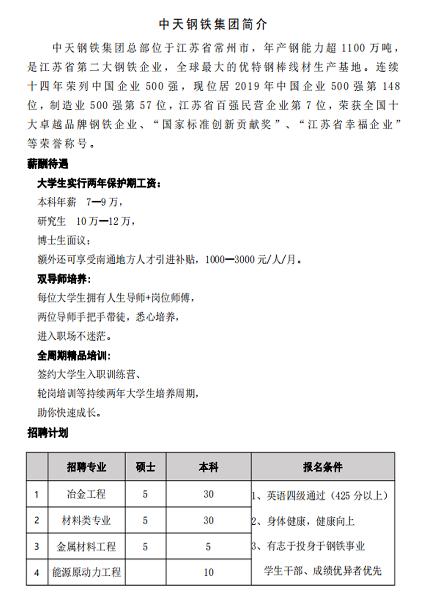 中天钢铁招聘信息
