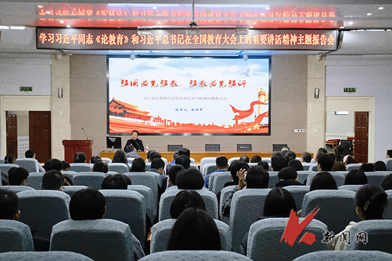 11月5日,英亚网站材料与冶金学院、工商管理学院、电子与信息工程学院在图书馆报告厅联合举办学习贯彻2024年全国教育大会精神主题报告会。报告会邀请学校马克思主义学院院长杨洪泽教授作《强国必先强教,强教必先强师》专题辅导报告,三个学院的师生代表200余人听报告。