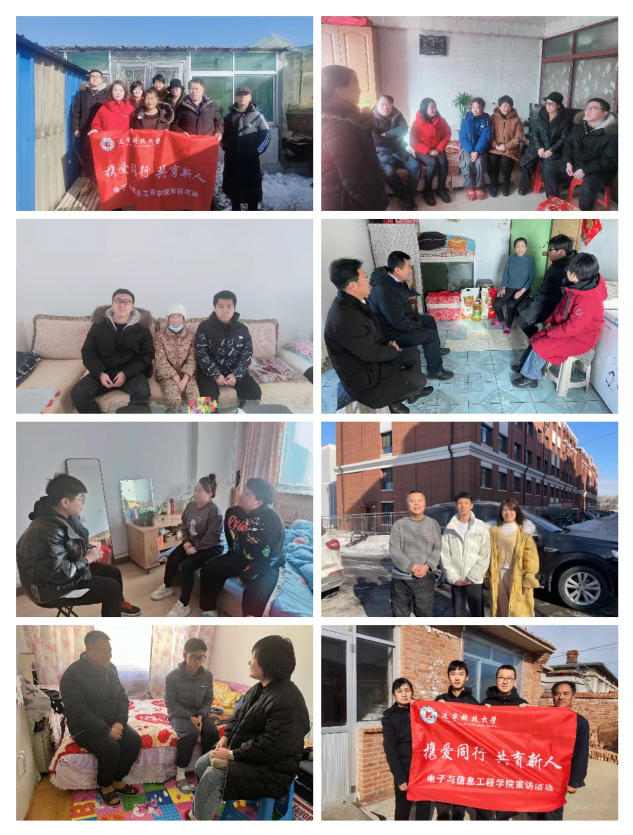 1月8日至24日,电信学院积极响应学校家访相关工作要求,聚焦“个体和团体”“线上和线下”“个例现象和普遍现象”三个维度,通过前期规划部署、线上访谈、实地走访、总结反馈等环节,构建精细化和多元化的家访工作模式。由学院领导班子带队,实地走访学生23人,其中,联合学校工会、财务处实地走访学生2人,电话联系8人、网上联系3人。覆盖家庭困难、学业困难等五类学生群体,将思想政治教育工作贯穿教育教学全过程,形成家校育人合力,促进学生成长成才。