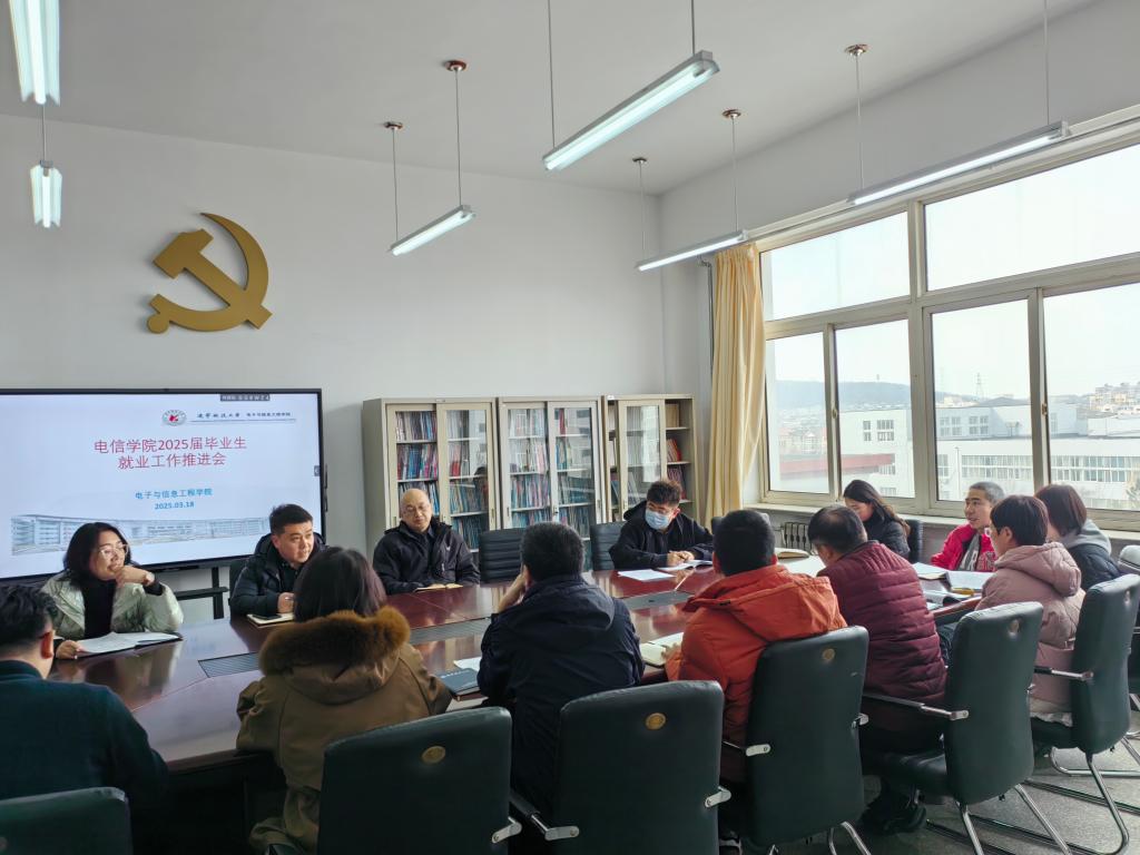 3月18日,英亚网站电子与信息工程学院于博闻楼310会议室召开2025年就业工作推进会。学院领导班子成员、各系主任及全体大四辅导员参加。