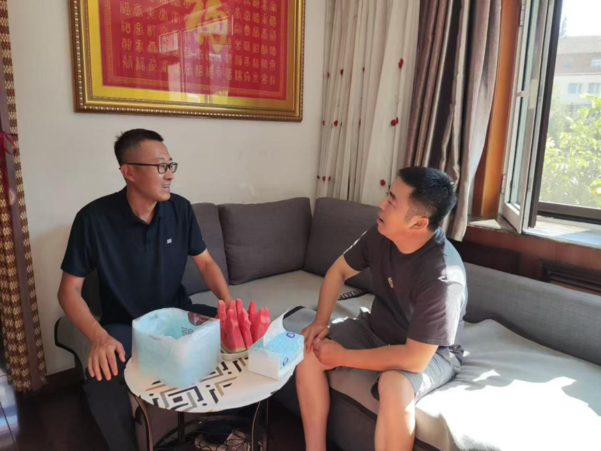 于家鹏还走访了家住朝阳地区的自动化专业23级的刘福庆、陈浩楠、周铭丰三位同学,为他们送去了喜报和大红花。2024年,刘福庆在“西门子杯”中国智能制造挑战赛中获得省特等奖,并获得校优秀学生三等奖学金;周铭丰在学校大学生通讯社获得优秀学生通讯员荣誉称号,并获得校优秀学生三等奖学金;陈浩楠担任班级班长,工作认真负责,获得学生工作骨干奖学金。