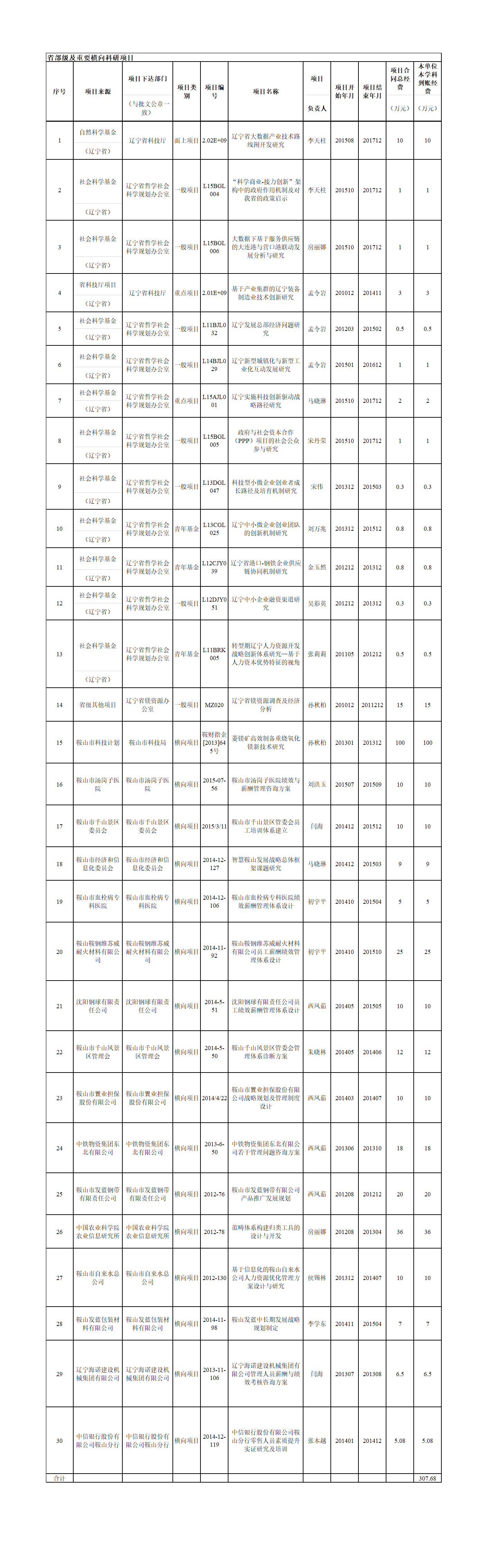 工商管理学院省级及重点横向科研项目