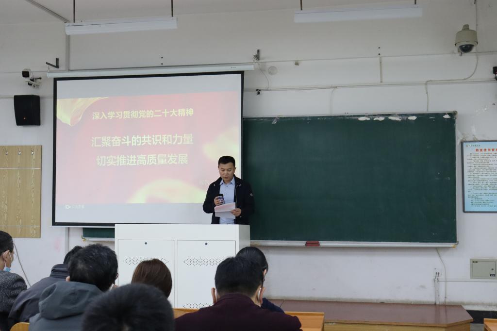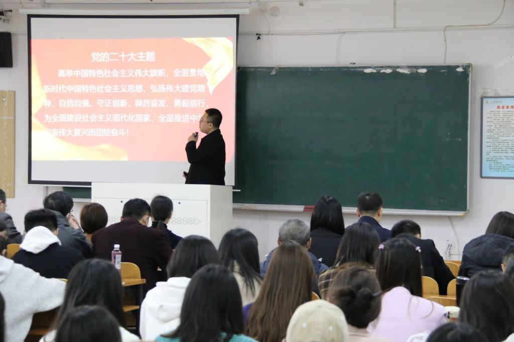 为深入学习宣传贯彻党的二十大精神,落实好《中共英亚网站委员会关于深入学习宣传贯彻党的二十大精神的方案》,3月28日下午,工商管理学院党委于博学楼C108教室主持召开学习贯彻党的二十大精神宣讲报告会,会议由管理学院党委书记董文武主持,管理学院师生代表、继续教育学院、科技园教职工代表参加。