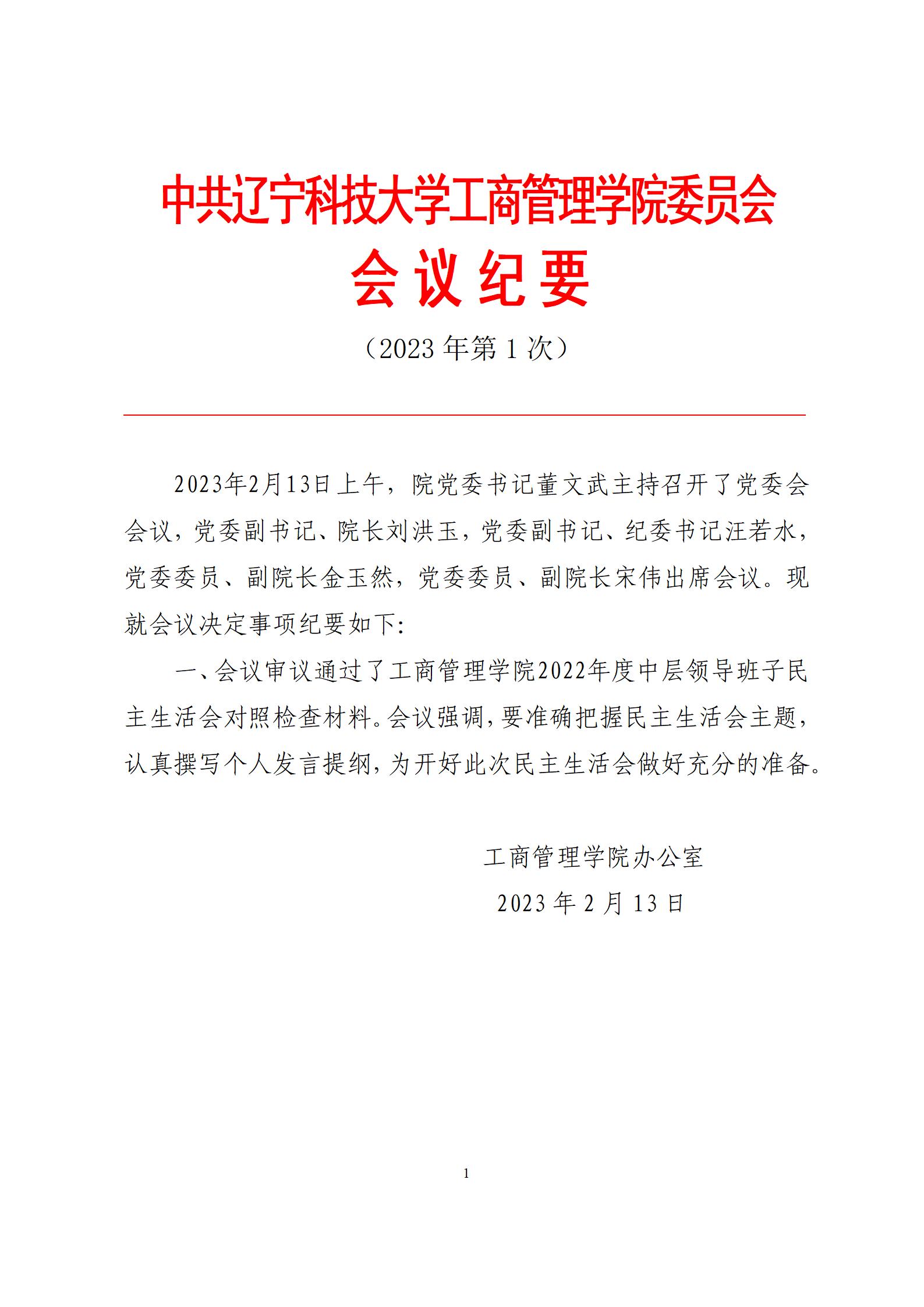 中共英亚网站工商管理学院委员会会议纪要(2023年第1次)