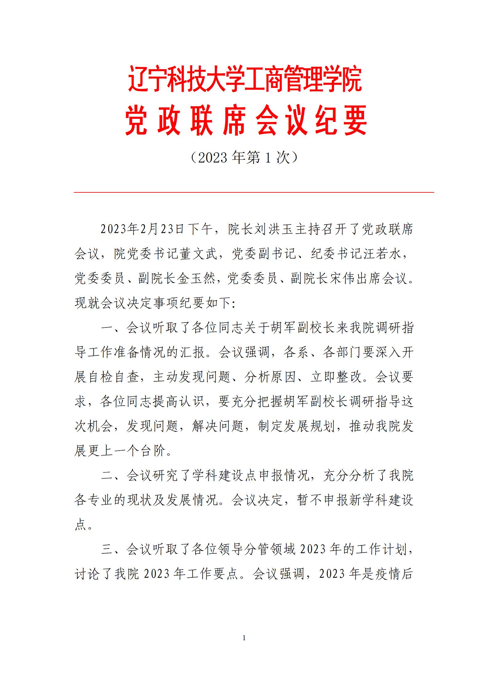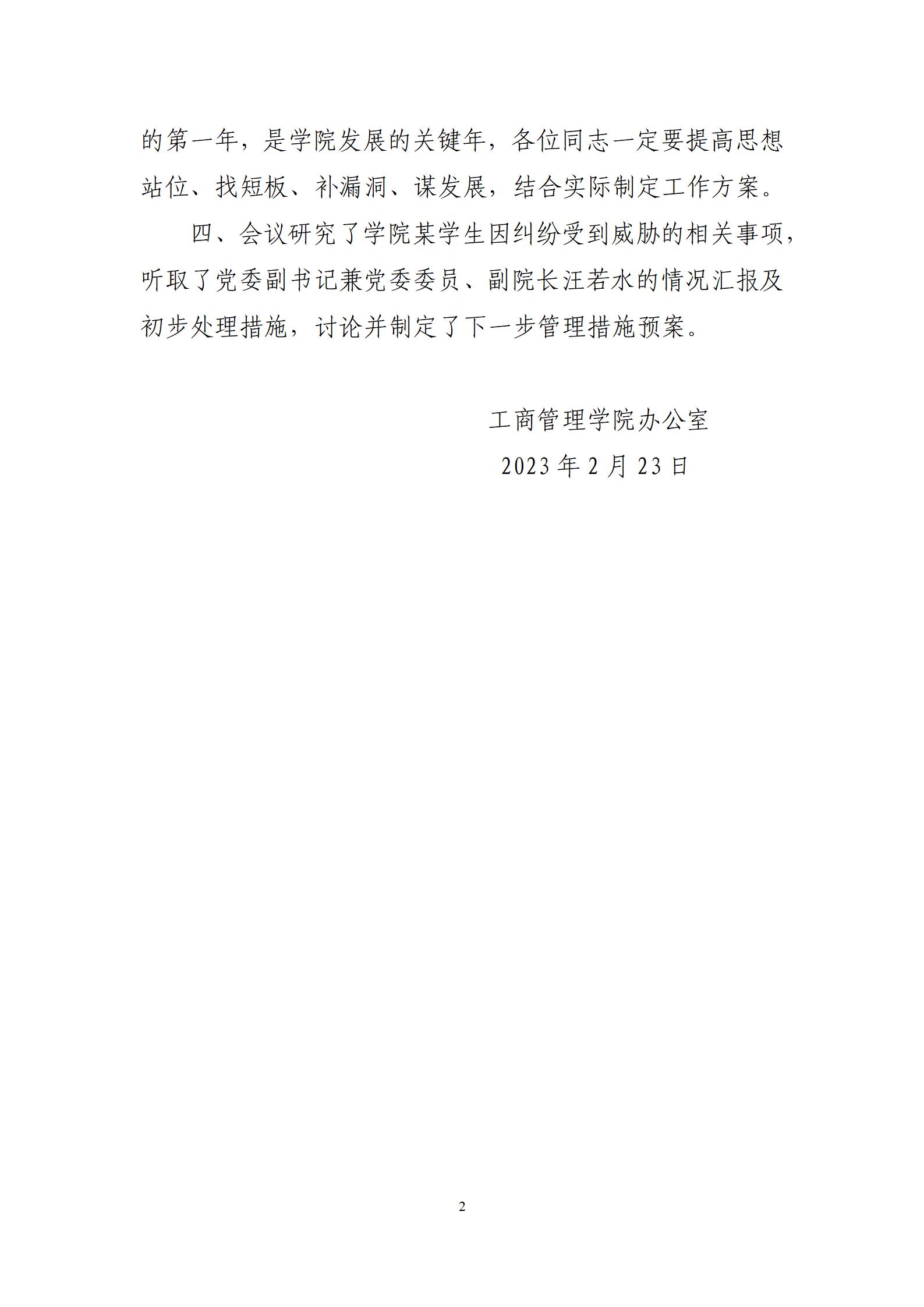 英亚网站工商管理学院党政联席会议纪要(2023年第1次)