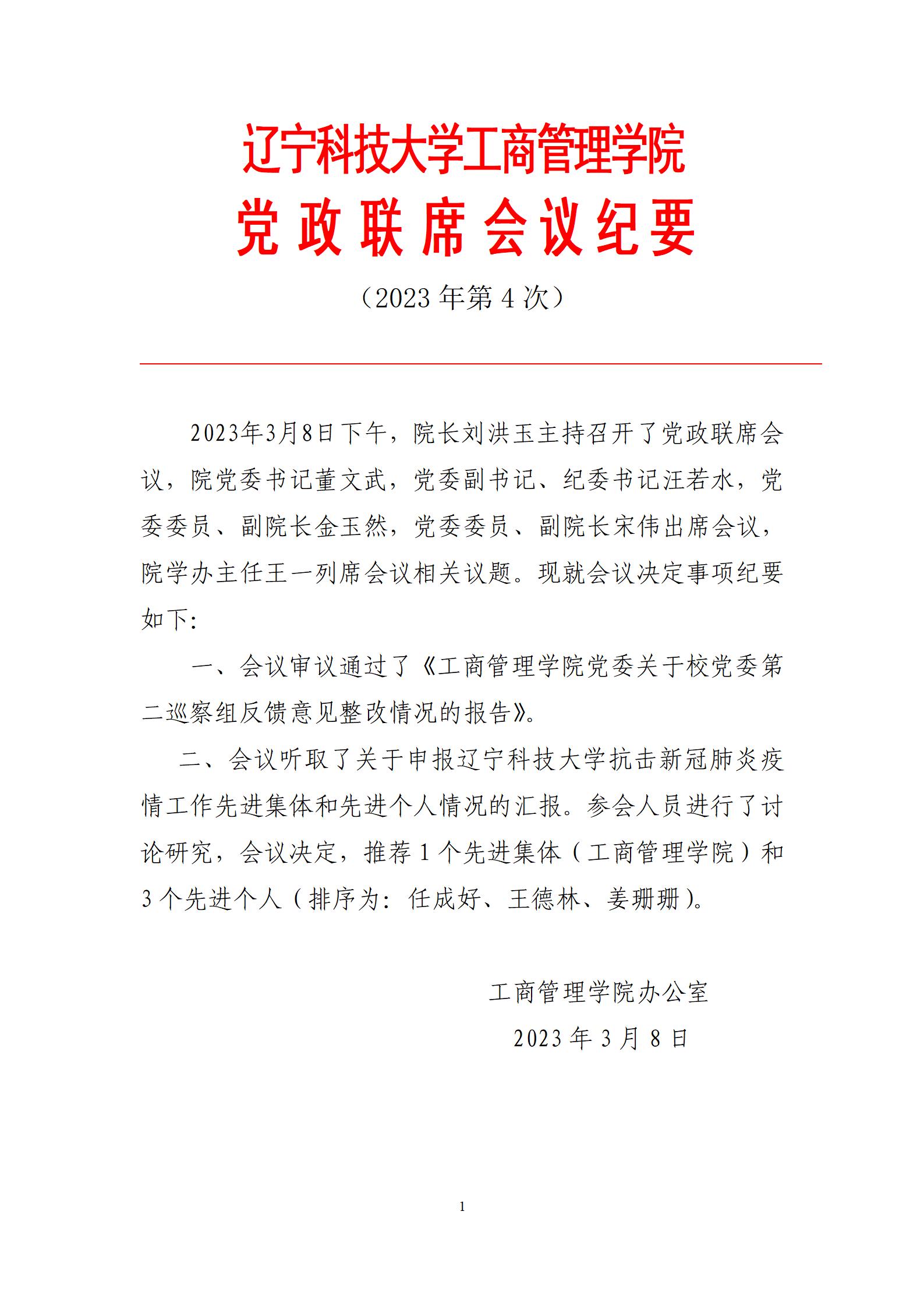 英亚网站工商管理学院党政联席会议纪要(2023年第4次)