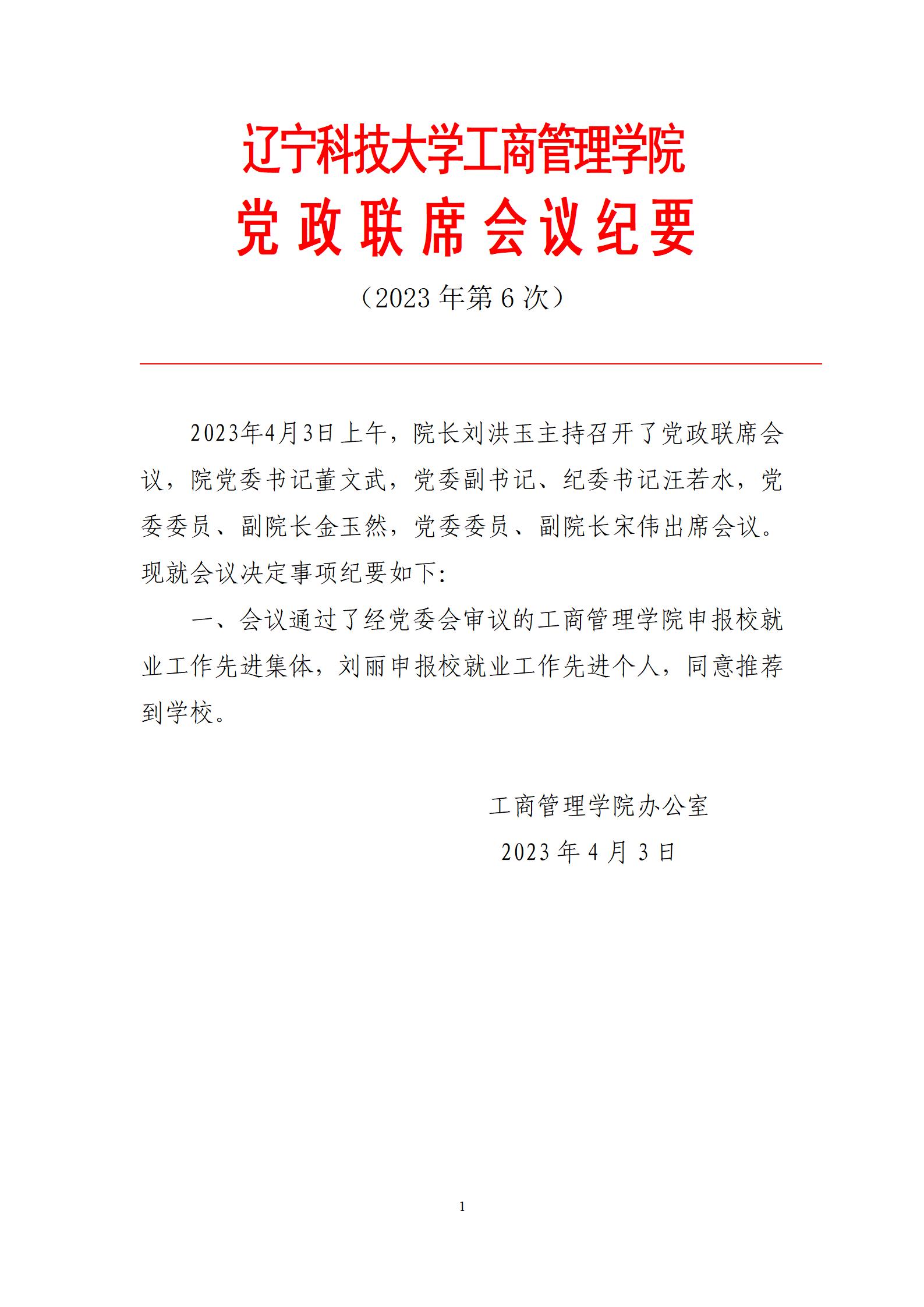 英亚网站工商管理学院党政联席会议纪要(2023年第6次)