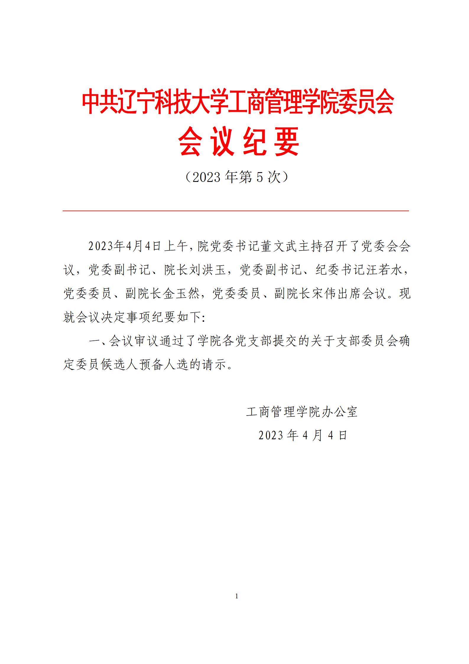中共英亚网站工商管理学院委员会会议纪要(2023年第5次)