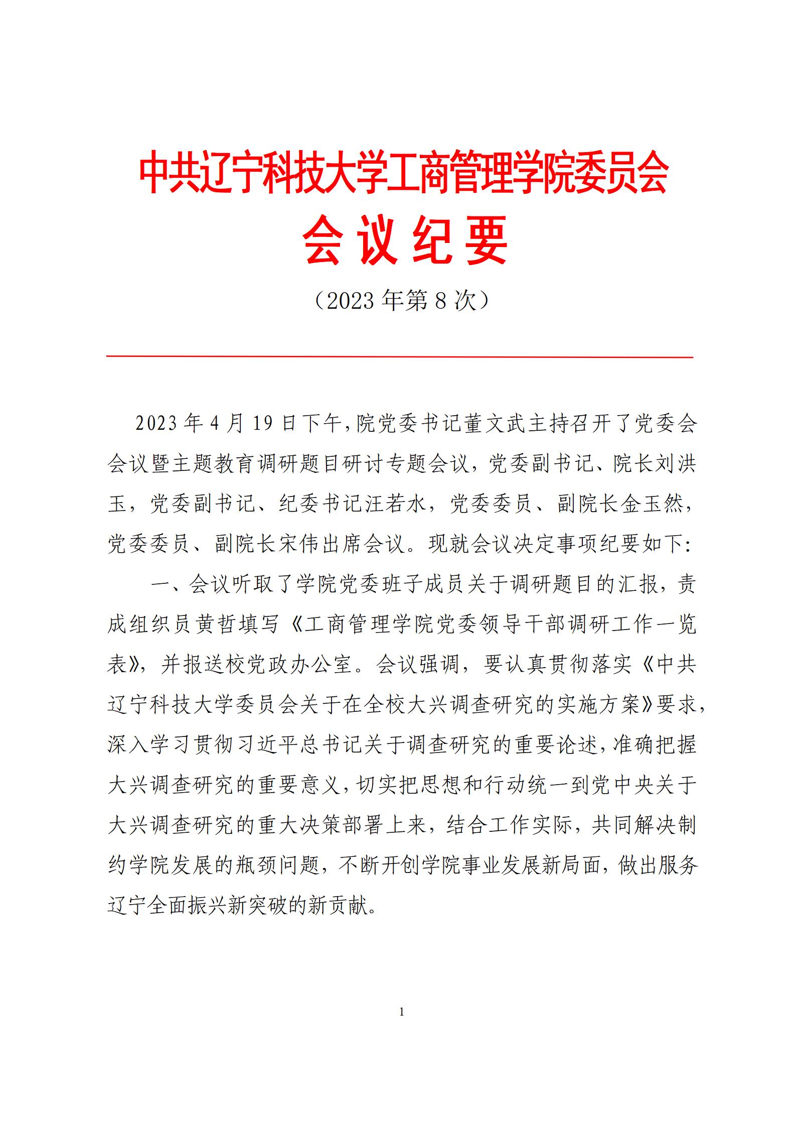 中共英亚网站工商管理学院委员会会议纪要(2023年第8次)