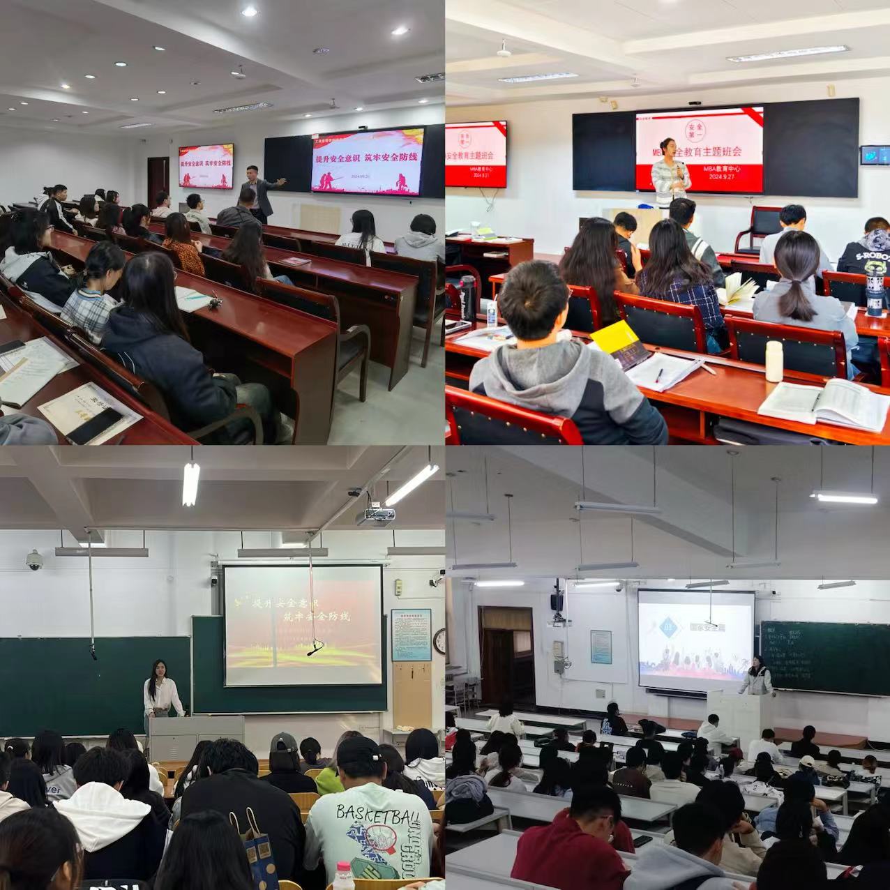 9月26日至28日,全院本科生、学术型硕士、MBA学员召开“提升安全意识、筑牢安全防线”主题班团会、年级大会,会上各辅导员围绕国家安全、防骗防诈、消防安全、校园安全、交通安全、网络安全等安全教育主题,通过播放火灾案例视频,结合大学校园内发生的一些学生钱财损失实例等,提醒学生遇到各种骗局做到“不理睬、不转账、不轻信、不汇款”,不贪图小便宜,不为盈利骗局所诱惑而上当受骗,重点给同学们讲述了如何预防和处理校园内出现的各种安全事故和隐患。帮助同学们进一步增强安全防范意识,掌握安全防范知识,加强自我安全保护,推动校园安全工作再上新台阶。