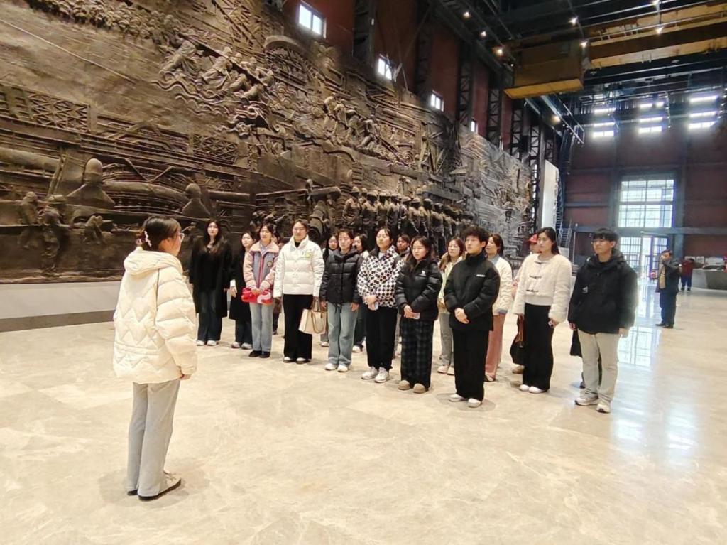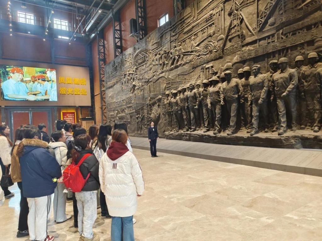 在博物馆序厅的巨型浮雕前,管理学院辅导员姜珊珊以"雷锋的423天"为题展开现场教学。1958年11月,18岁的雷锋从湖南奔赴鞍钢,在化工总厂洗煤车间担任推土机手。他不仅以"干一行爱一行"的态度钻研技术,创下全车间最高推煤量纪录,更坚持用微薄工资资助工友、义务修补厂房,在鞍钢的423天里写下了20余篇饱含赤子情怀的日记。姜老师特别指出,雷锋在鞍钢期间形成的"螺丝钉精神""钉子精神"和无私奉献品格,正是新时代青年成长成才的精神坐标。