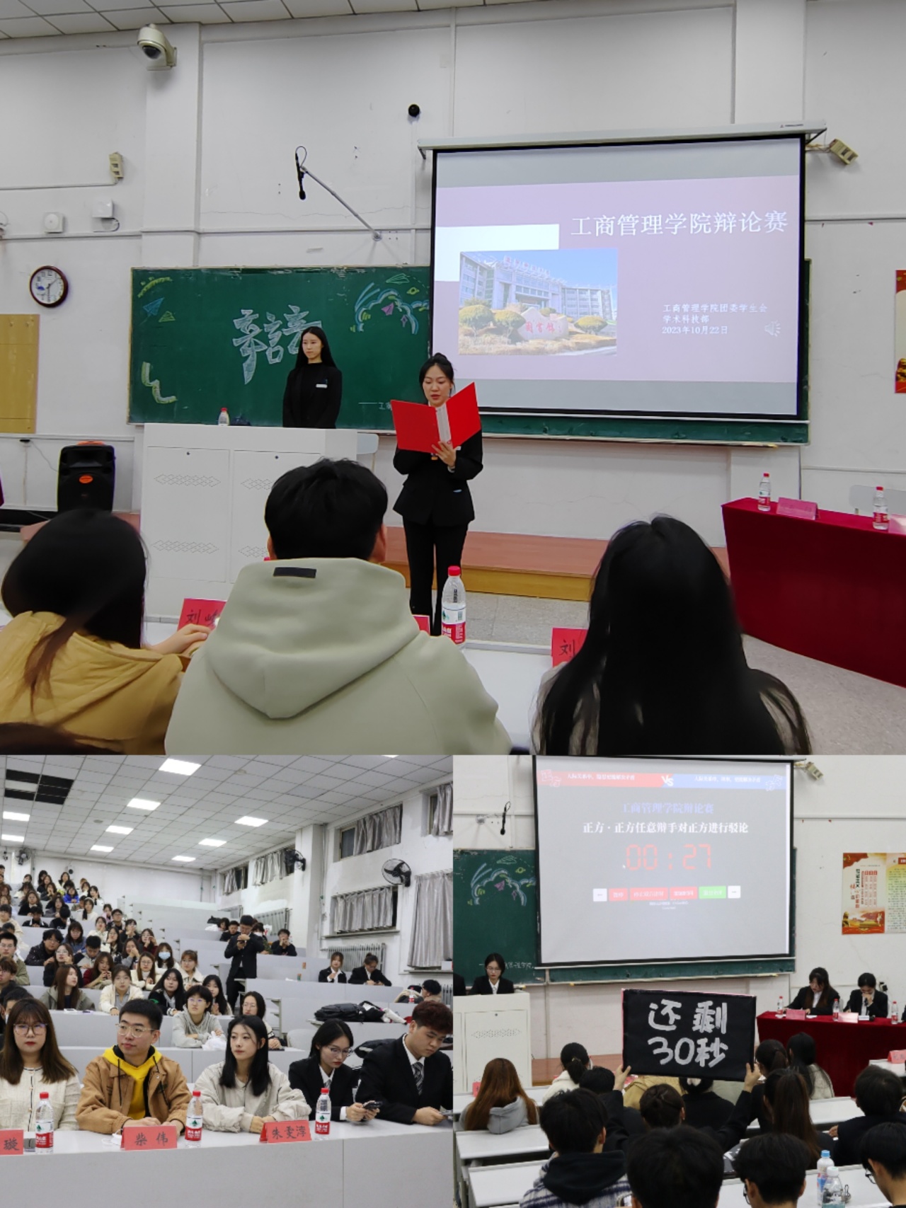 10月22日晚上,工商管理学院第十八届辩论表演赛在博学楼C302举行。