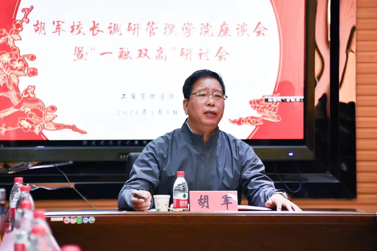 4月8日上午,英亚网站工商管理学院召开“一融双高”专题研讨会。校党委副书记、校长胡军出席会议并讲话。管理学院领导班子成员、系室主任、党支部书记及科级以上干部参加研讨。