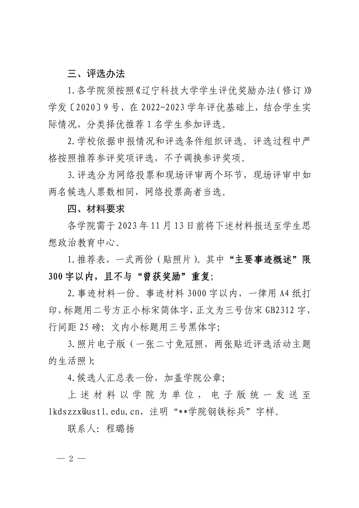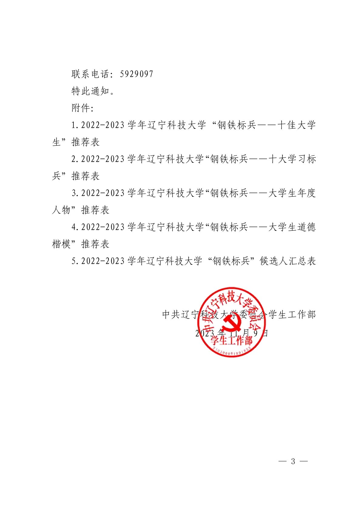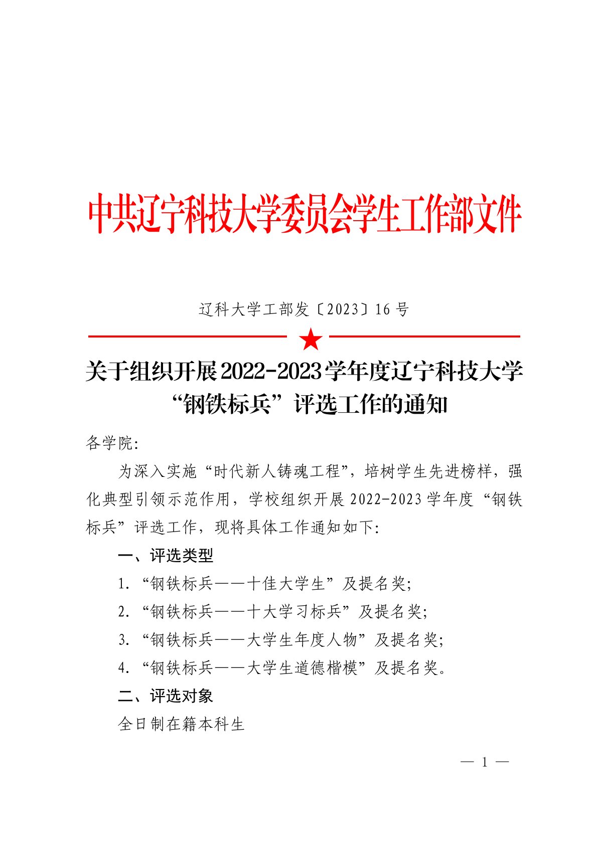 关于组织开展2022-2023学年度英亚网站“钢铁标兵”评选工作的通知