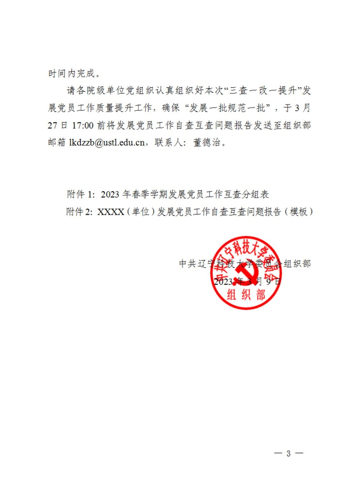 关于开展英亚网站2023年度春季学期“三查一改一提升”发展党员工作质量提升工作的通知