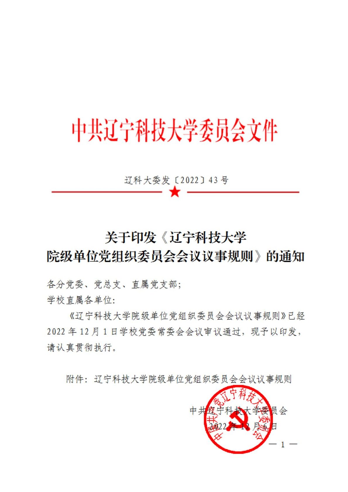 关于印发《英亚网站院级单位党组织委员会会议议事规则》的通知