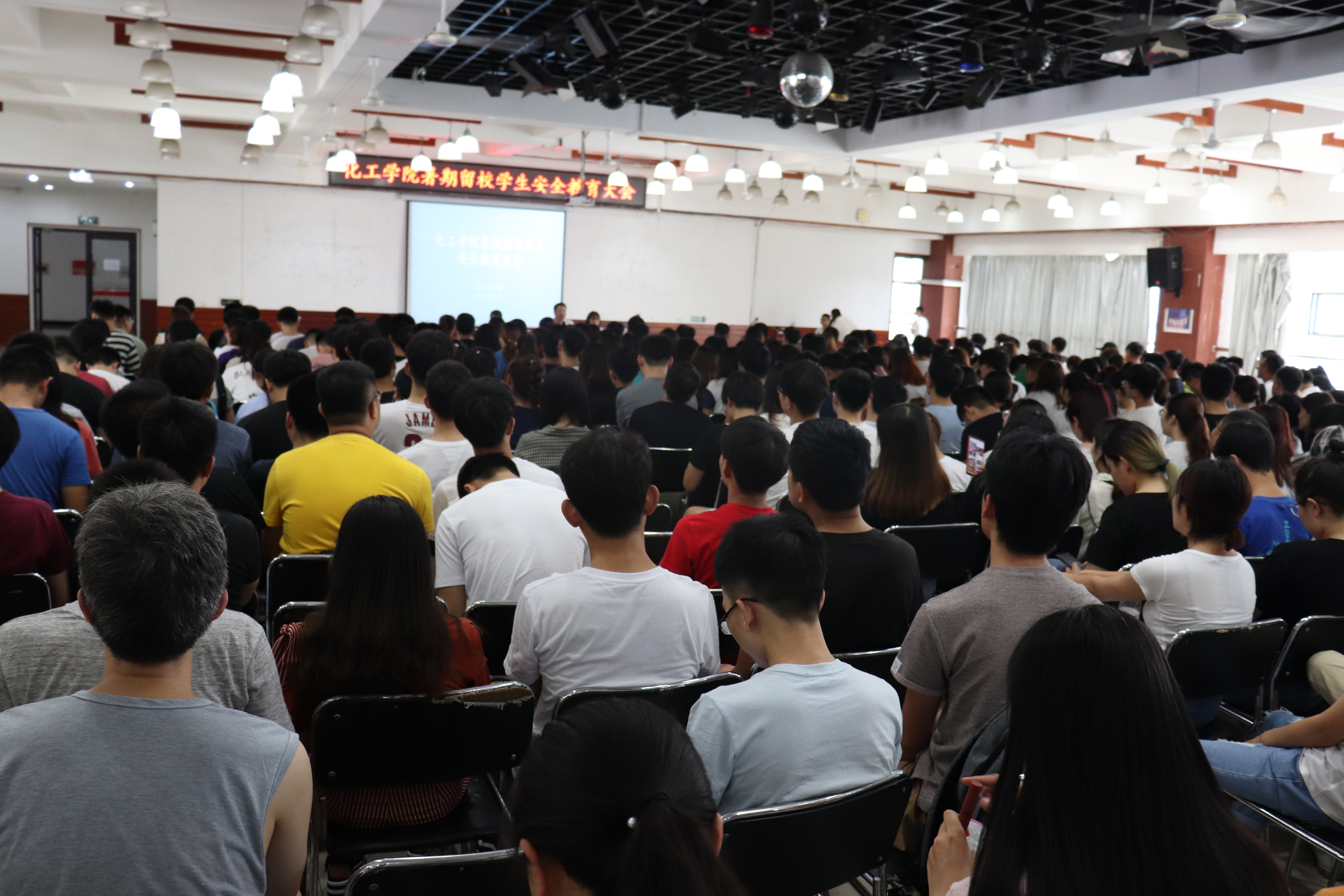7月18日,化工学院于明德楼大学生活动中心召开暑期留校学生安全大会,全体留校学生、各年级辅导员及学院实验中心全艳玲老师参会。
