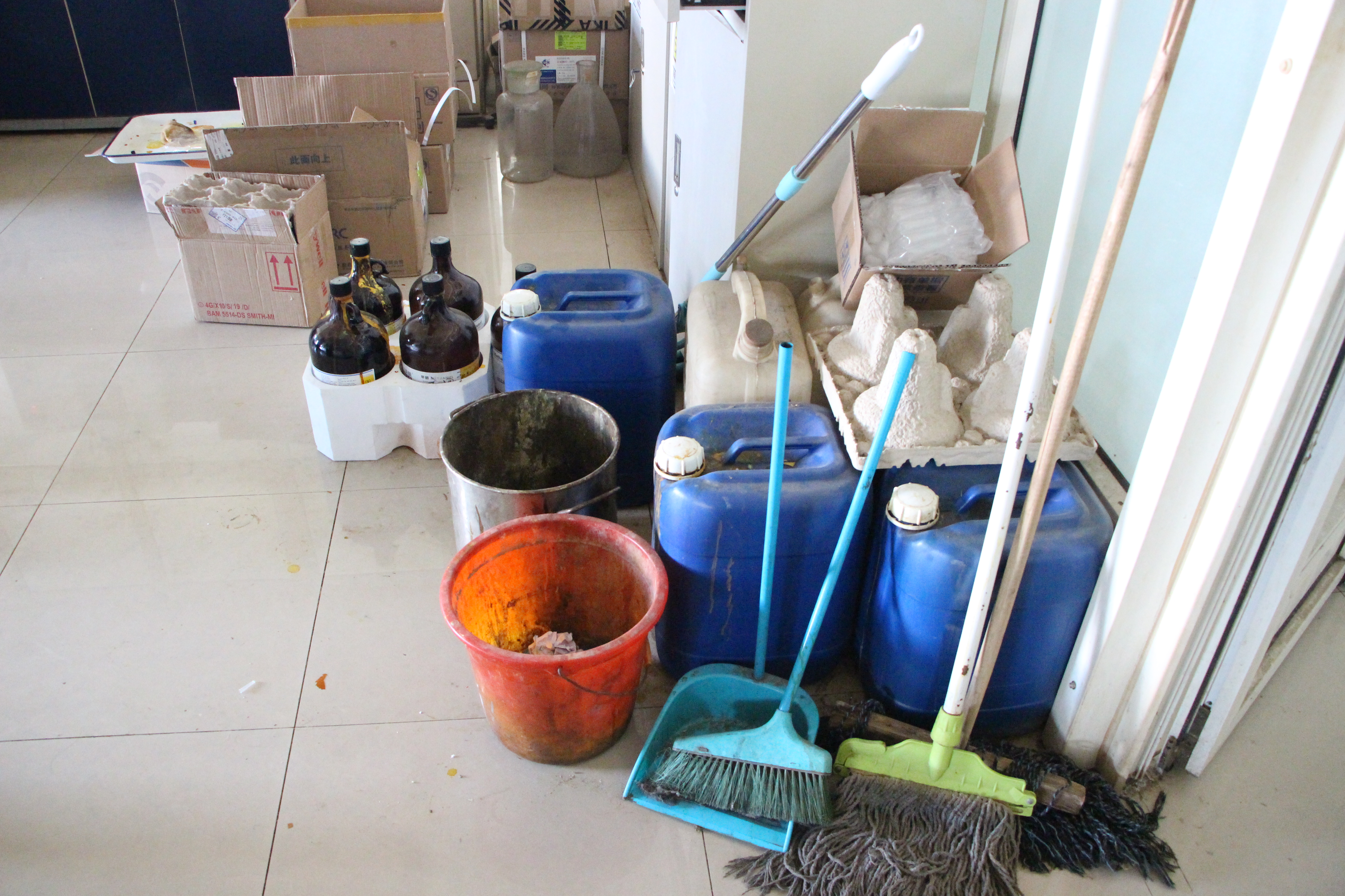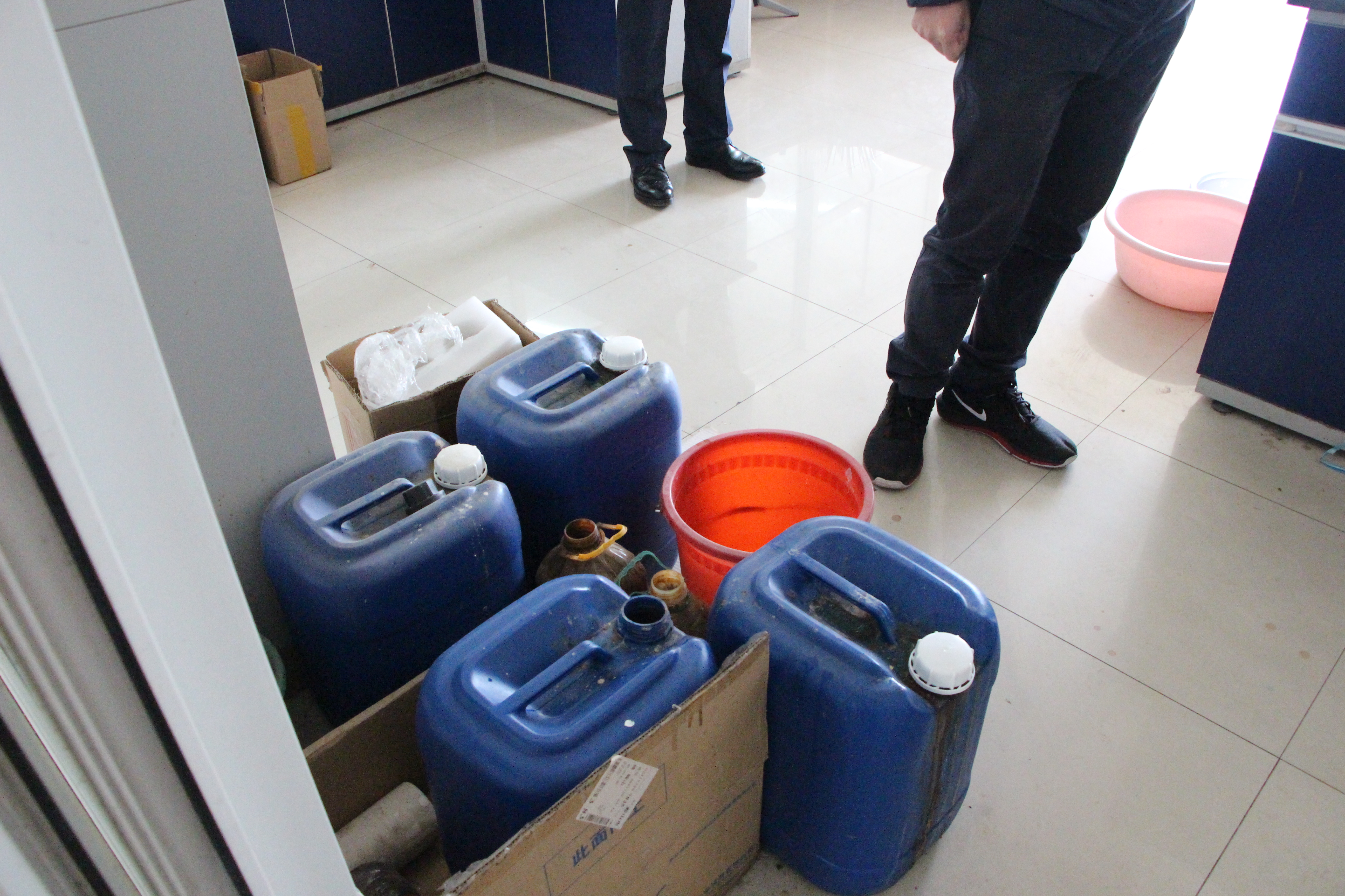 在检查中发现:有的实验室及科研场所使用插排还存在乱接现象,电源连接不规范;气瓶没有标签,还存在没有固定装置情况;实验药剂、废液容器还存在没贴标签,随地乱放现象;有的实验室、科研场所脏乱差没有很好整治等。检查组当即要求立即整改,如一时解决不了,由检查小组办公室及实验中心督促整改到位,检查小组将随时二次检查。