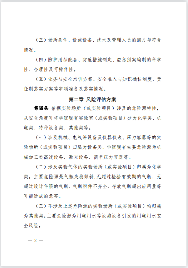关于印发《化学工程学院实验室(实验项目)风险评估及分级管控办法(试行)》等4个文件的通知