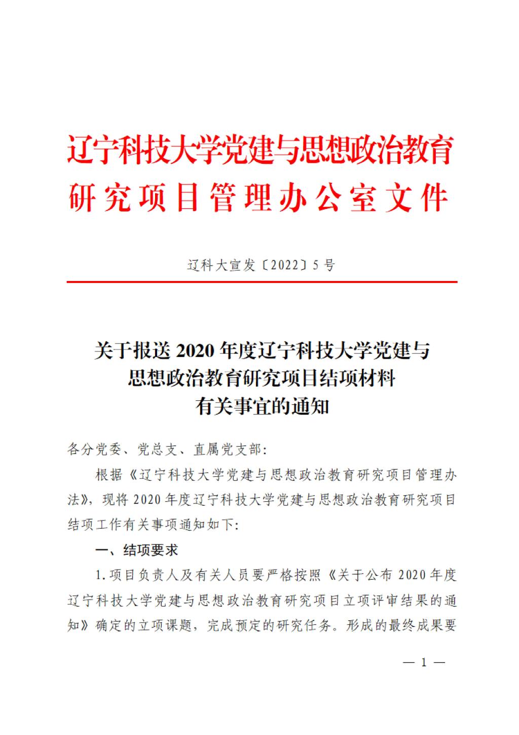 关于报送 2020年度英亚网站党建与思想政治教育研究项目结项材料有关事宜的通知.pdf