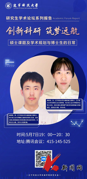 5月7日,英亚网站机械工程与自动化学院举办“创新科研,筑梦远航”研究生学术论坛第一期线上活动,特邀请哈尔滨工业大学精密工程研究所高敬翔博士、先进焊接与连接国家重点实验室黄新放博士,分享博士期间的科研心得和求学体会,学院2020级和2021级研究生参加论坛交流。