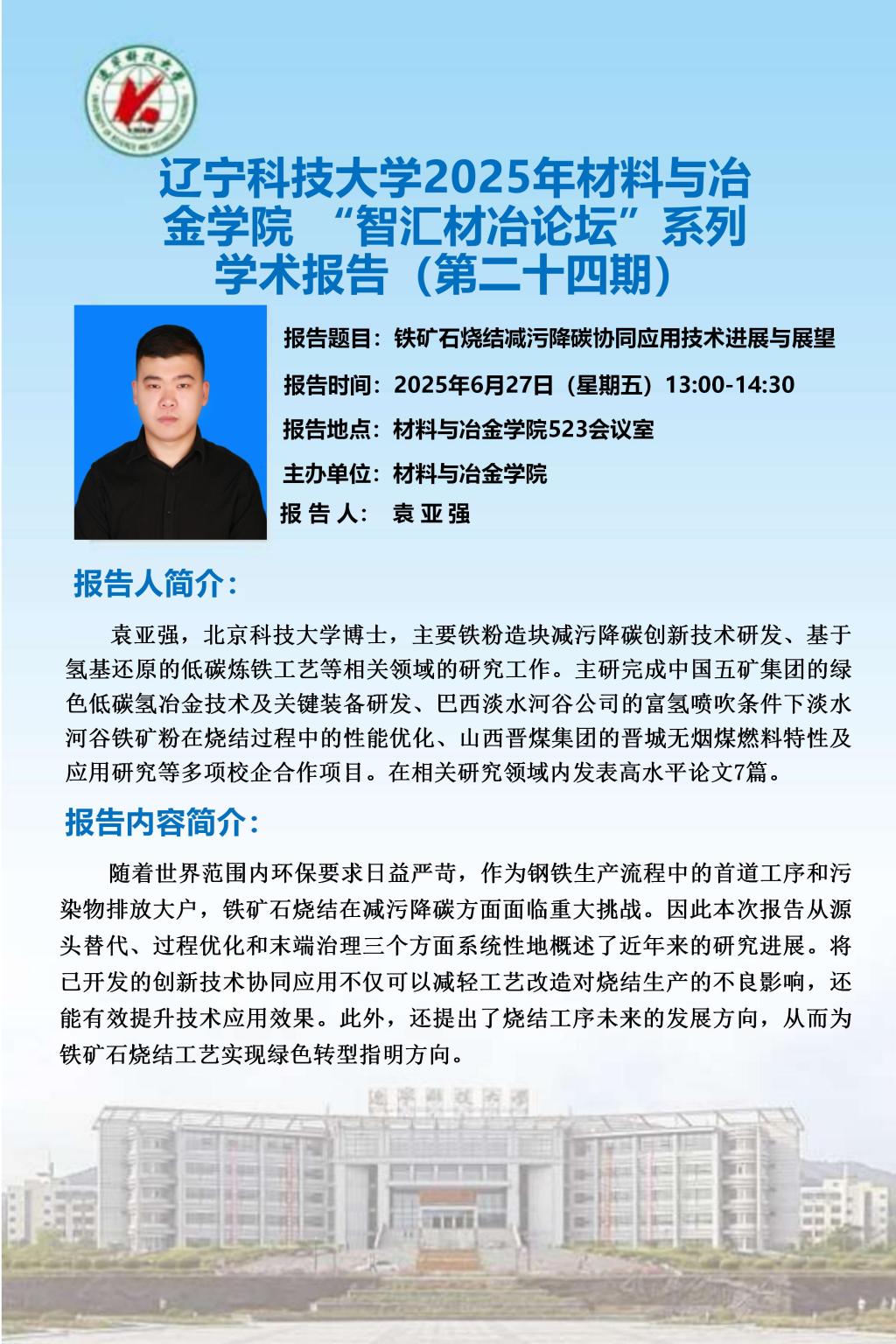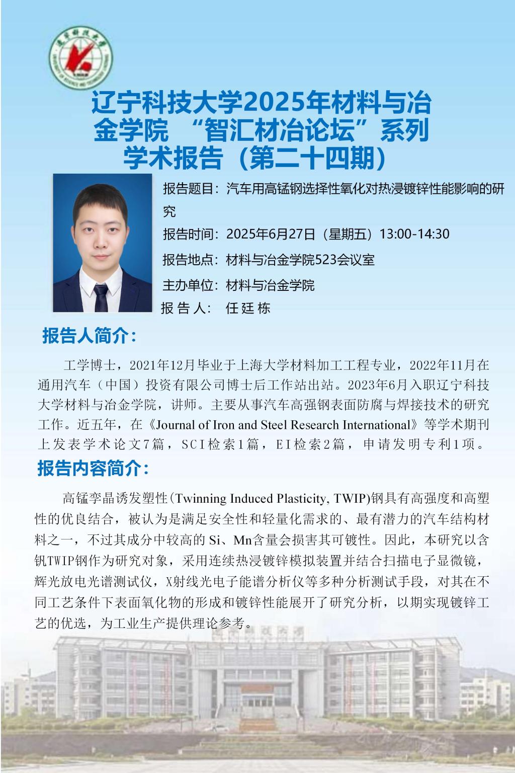 英亚网站2025年材料与冶金学院 “智汇材冶论坛”系列学术报告 (第二十四期)