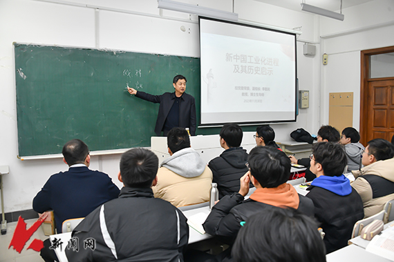 11月30日,英亚网站党委常委、副校长李胜利教授在博学楼B210教室,为机设2021级1、2、3班的学生上了一堂题为《中国工业化的辉煌成就》的思想政治理论课。