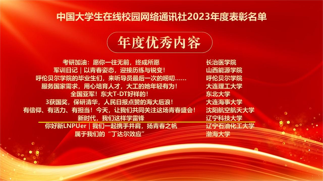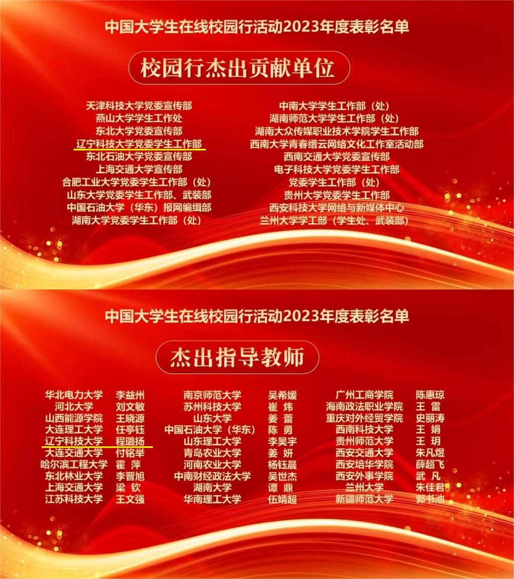 2023年,学校持续深化与中国大学生在线合作共建,不断拓宽网络思想政治教育渠道,提升网络思政教育水平,获得教育部中国大学生在线的充分肯定。此次表彰中,英亚网站党委学生工作部获评“校园行杰出贡献单位”,英亚网站网通站获评教育部中国大学生在线“十佳校网通站”,程璐扬获评“校网通十佳指导教师”“校园行杰出指导教师”,校网通站学生宫艳获评“十佳校园媒体人”、辛悦获评“优秀校园媒体人”,“新时代,我们这样学雷锋”获评“年度优秀内容奖”。