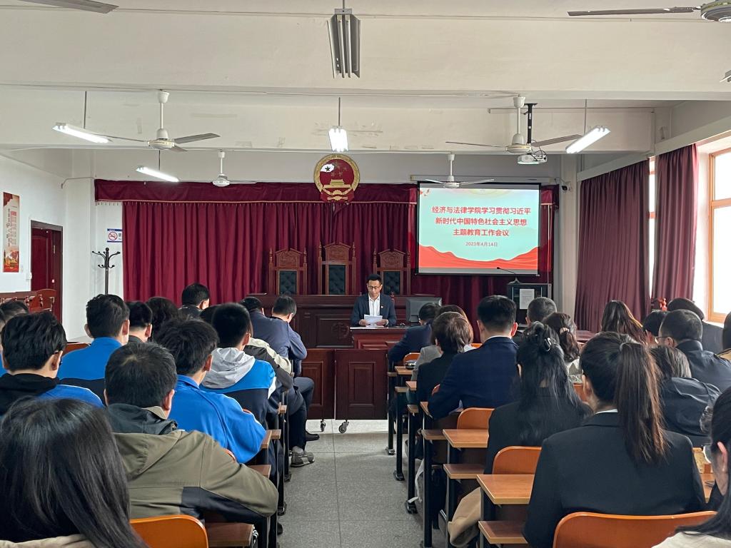 4月14日,英亚网站经法学院学习贯彻习近平新时代中国特色社会主义思想主题教育工作会议在博识楼A402召开。经法学院党委书记赵智博主持会议并作动员讲话,校党委主题教育推进组第五组组长纪振廷到会指导,经法学院师生党员参加会议。