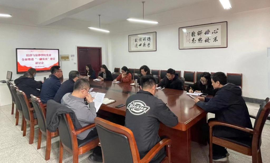 为贯彻落实学校党委关于全面推进“一融双高”建设的指导意见,4月15日,经法学院在博识楼A305召开推进“一融双高”建设研讨会。会议由院长郭浩淼主持,学院党委成员、党支部书记和系主任参加会议。