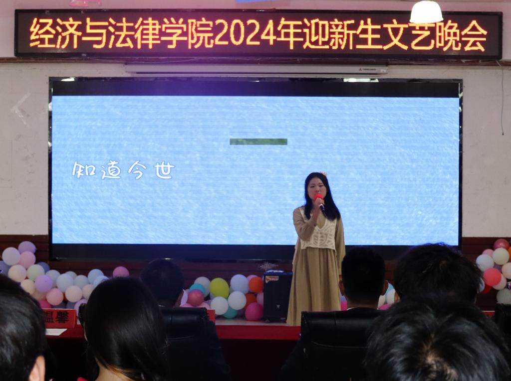 共赏中秋月,人间话团圆。9月17日晚,经法学院于明德楼大学生活动中心举办了以“中秋同国庆 师生共团圆”为主题的迎新生文艺晚会。学院党政领导及辅导员、团学骨干、新生班导生以及全体2024级新生近300人观看了本场演出。