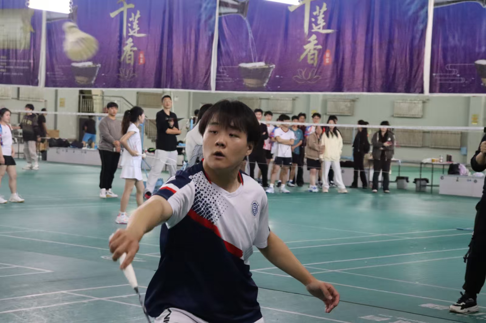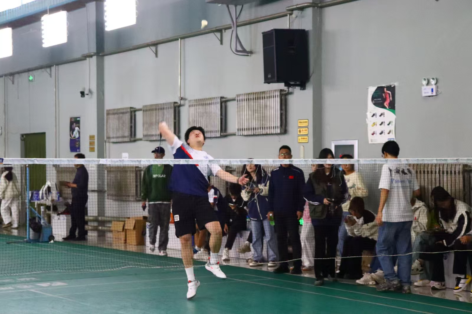 球馆内,比赛如火如荼的进行着,经法学院的羽毛球健儿们身姿矫健,每一次挥拍,都凝聚着智慧与力量,每一次接球,都来自长久的练习,所有的光芒,都来自不懈的努力,隔网对打,每一次博弈,都是一种青春的碰撞。他们全神贯注、动作敏捷,轻盈的跳跃、精准的扣杀、巧妙的救球,不断将比赛推向高潮。观众们热情洋溢,为选手们的精彩表现欢呼雀跃,现场气氛热烈非凡。