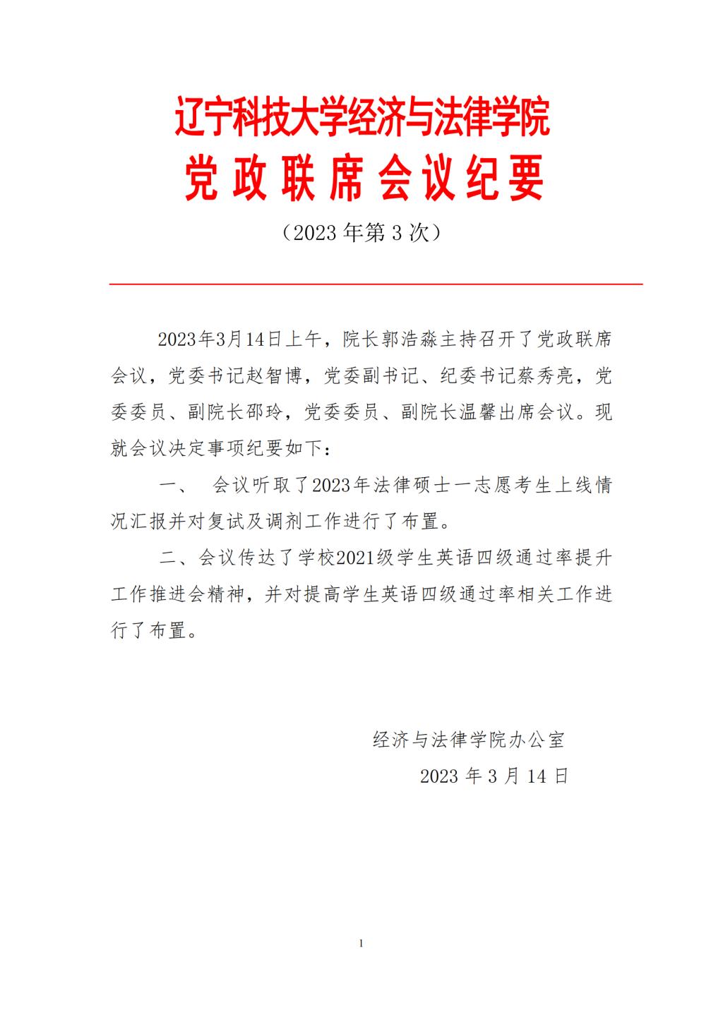 英亚网站经济与法律学院党政联席会会议纪要(2023年第3次)
