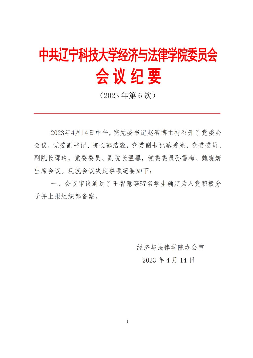 中共英亚网站经济与法律学院委员会会议纪要(2023年第6次)