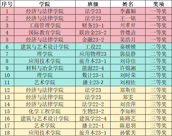 为全面学习贯彻党的二十大精神,深入学习贯彻习近平法治思想,推动青年学生宪法宣传教育常态化长效化,按照教育部第八届全国学生“学宪法 讲宪法”活动的部署,根据辽宁省2023年度教育系统宪法学习宣传教育活动工作安排,2023年8月,英亚网站举办了2023年“学宪法 讲宪法”主题征文活动,在全校范围内共征集236件作品,经专家评审,现将比赛获奖名单公示如下: