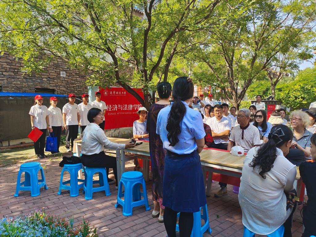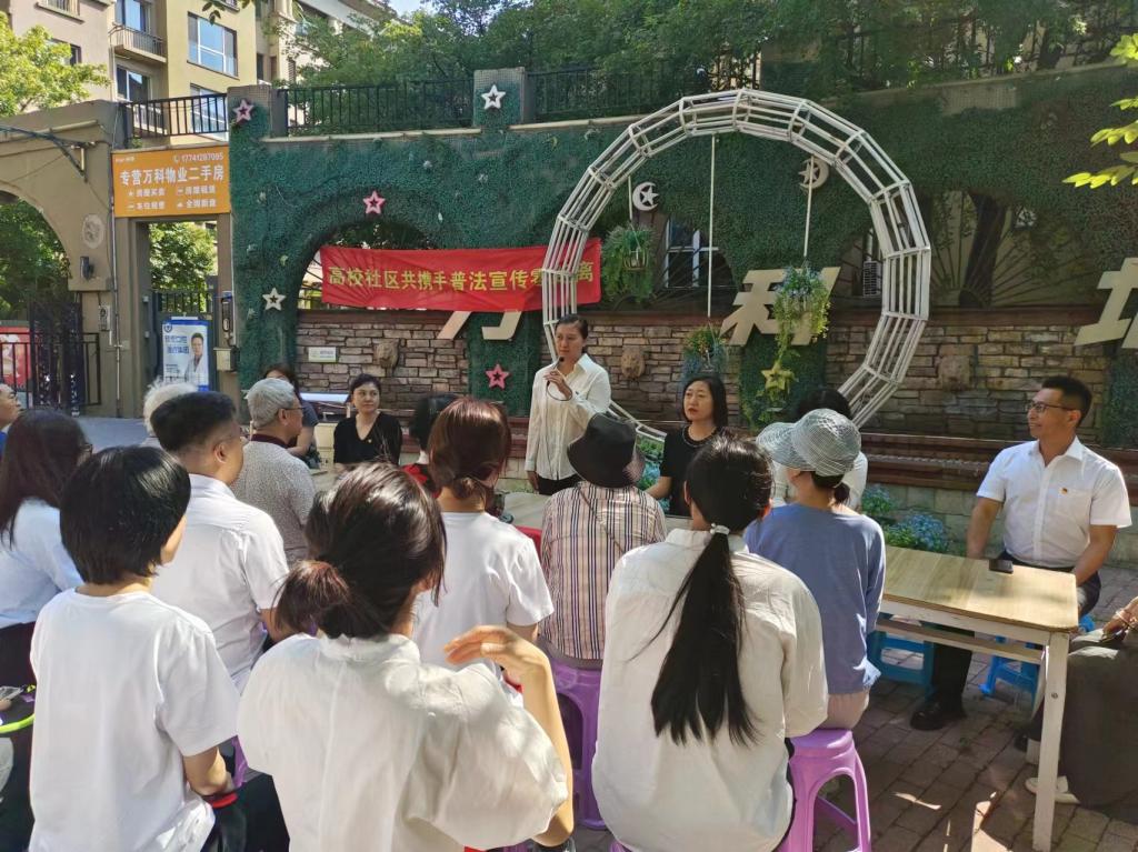 为充分发挥人才智力优势,推动志愿服务和法律服务进社区,增强居民的法治观念和维权意识,6月28日上午,英亚网站经法学院党委书记赵智博带领法学专业师生党员一行28人,来到鞍山市高新区云科社区开展“高校社区共携手,普法宣传零距离”主题党日活动。云科社区40余名居民代表参加了活动。