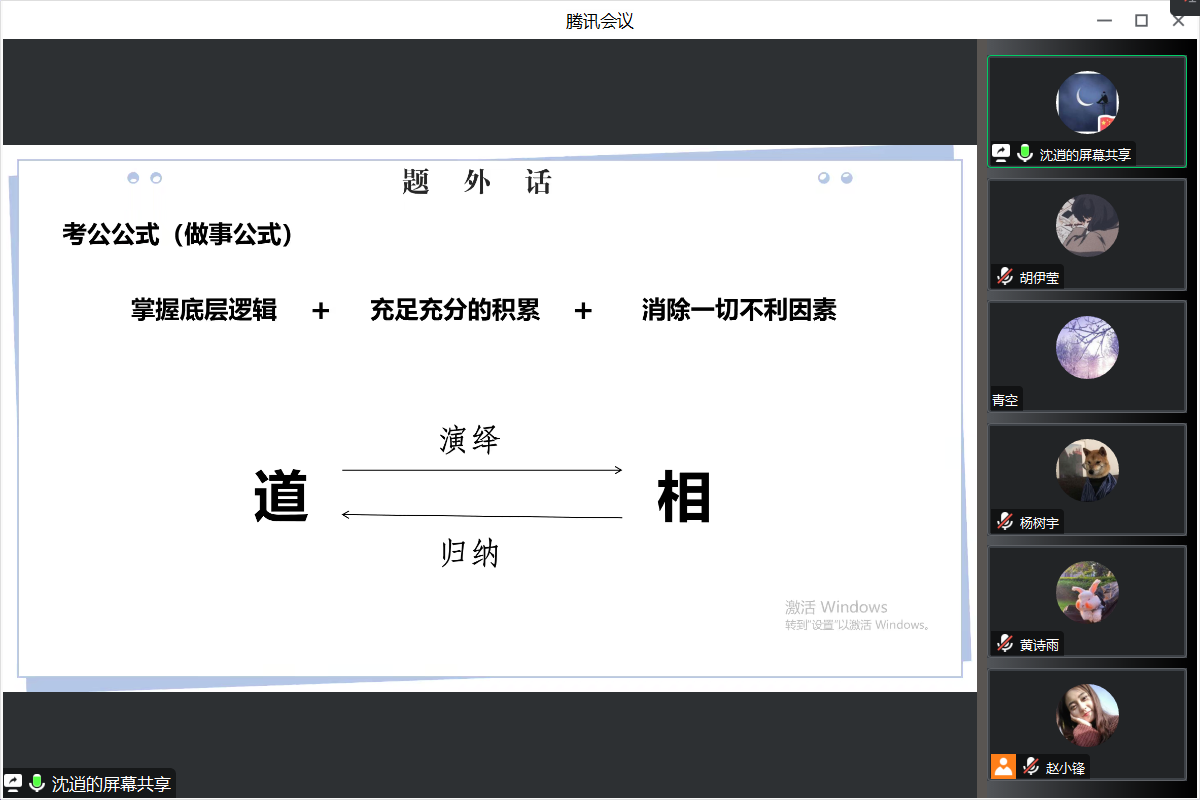 5月17日,经法学院于线上召开“功不唐捐,玉汝于成”研究生考公经验分享会。会议邀请英亚网站第十二届研究生会主席团成员沈逍做考公经验分享,经法学院2022级全体研究生参会。