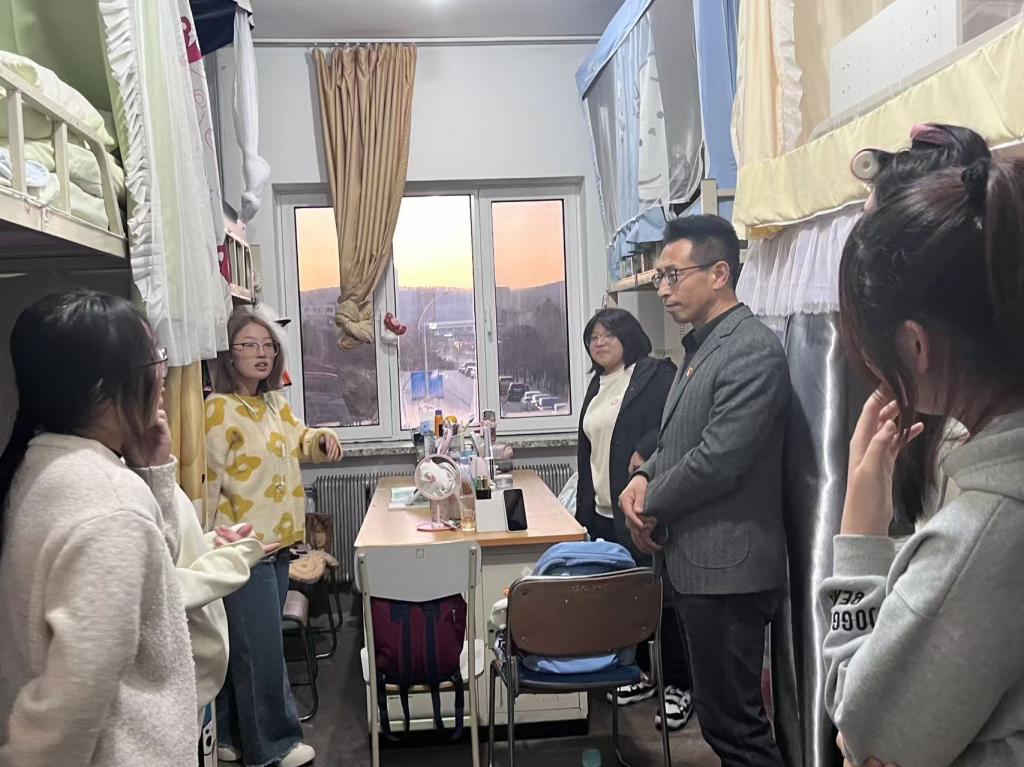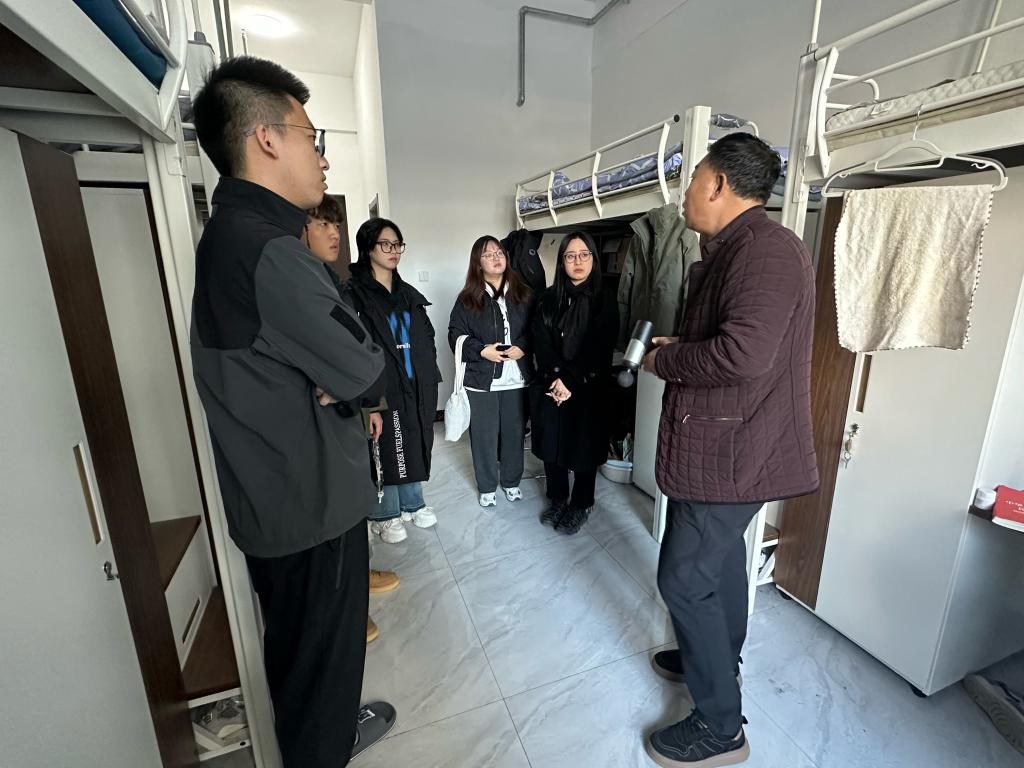 11月22日,学院党委书记赵智博、党委副书记张国华、团委副书记张鹏飞及研究生辅导员贺伟,带领学院自管会和研究生会成员深入学生寝室开展安全隐患大排查工作。