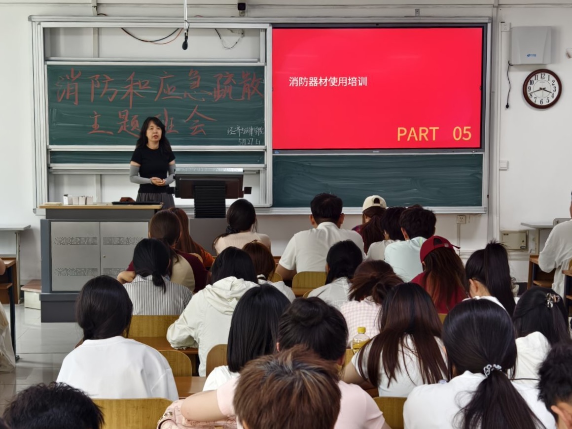 5月27日,经法学院与计算机、建艺、矿业、管理、继续教育、理学院及后勤八个部门联合开展消防演练及逃生演习。学院党委副书记张国华担任协调人,学办主任齐艳萍协同推进相关工作,学院全体同学参加。