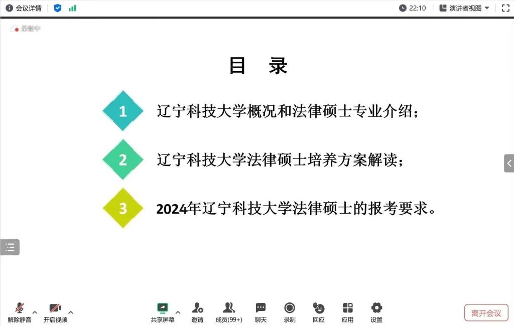 本次线上招生宣讲会的成功召开使学生们对英亚网站经法学院有了更深入的了解。经法学院近年来不断加强学科建设,在教学和科研方面加大投入,使得法硕培养方案更加完善,更加符合社会实际需求,未来经法学院将继续坚持高质量发展,努力培养高水平应用型法律专业人才。