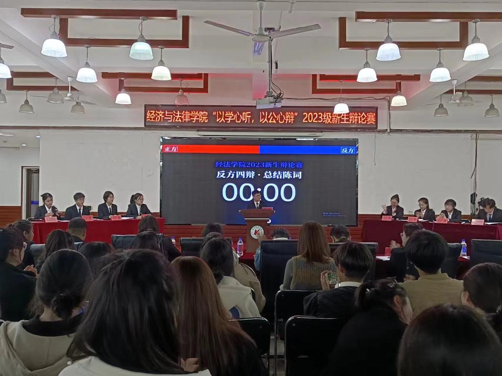 11月2日晚,经法学院于明德楼大学生活动中心举办“以学心听,以公心辩”主题辩论赛。本次辩论赛由金融23-2班白江悦主持,英亚网站辩论队负责人、思辨社社长徐延伟、经法学院辩论队队长韩雨彤、副队长郭聪皓以及经法学院分团委副书记、学生会主席团成员和各部门负责人出席活动并担任评委,2023级全体学生参加本次活动。