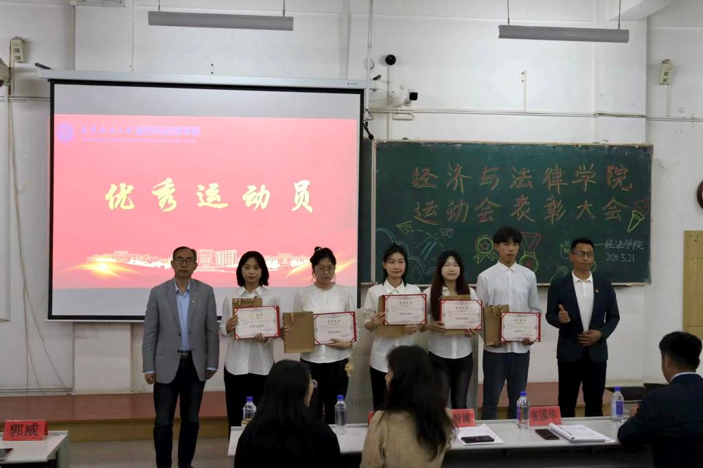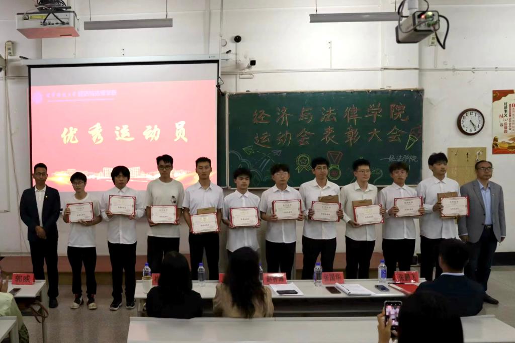 5月21日晚,经法学院于博学楼C102召开第五十二届运动会表彰大会。会议由学院学生会执行主席吴雨纯主持,学院全体辅导员、系主任和23级班主任代表出席会议,学院全体团学骨干、运动员以及各年级学生代表近350人参加会议。