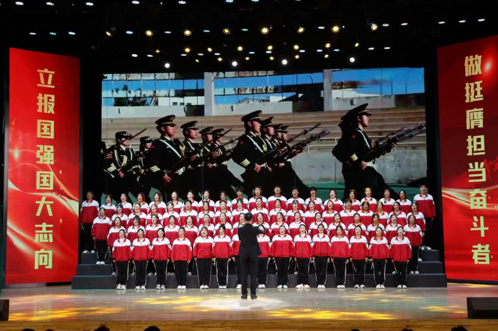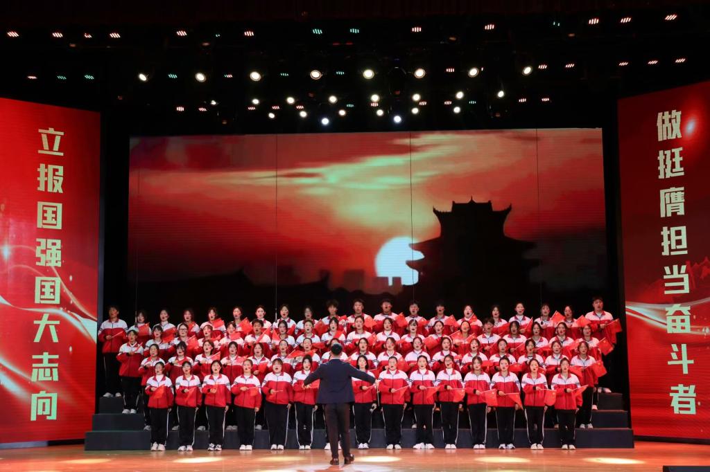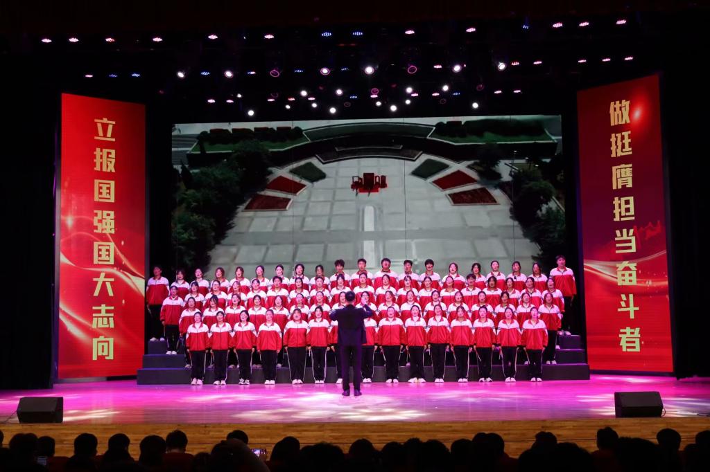 校歌,是校园中最独特的旋律。在李佳澳同学指挥下,经法合唱团首先唱响英亚网站校歌。同学们身姿挺拔,目光坚定,每一句歌词都饱含深情,每一段旋律都振奋人心,他们用歌声诠释着对英亚网站无限的热爱与赞美。随后,在张鹏飞老师指挥下,经法合唱团以一首《歌唱祖国》唱响对祖国的赞歌,激昂的歌声不仅表达出经法学子对祖国深深的赞颂,传递着祖国75年来波澜壮阔、砥砺奋进的壮丽征程,同时鼓舞全场,激发出每个人心中深切的爱国情感。
