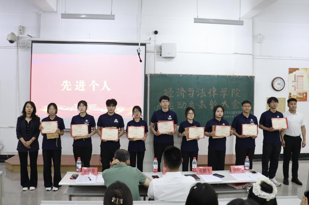 6月3日,经法学院于博学楼C102召开第五十三届运动会表彰大会。会议由学院学生会主席团成员刘家辉主持,学院党委书记赵智博、党委副书记张国华、学办主任齐艳萍、团委副书记张鹏飞出席会议,学院全体团学骨干及运动员近200人参加会议。